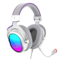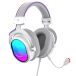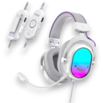Audifono Alambrico Para Gamers Marca fifine Modelo AmpliGame H16 Con Microfono Y RGB Conexion USB Color Blanco