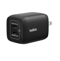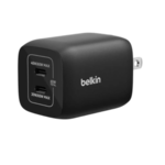 Cargador De Pared Marca Belkin Modelo ENA007DQBK Con 2 Entradas USB-C Potencia De Hasta 65 Watts Para Nintendo Switch 2 Color Negro