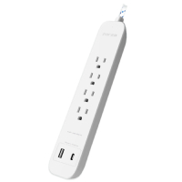 Regleta Marca Forza Modelo FSP-411USBCW Con 4 Tomas 1 Puerto USB-C 1 Puerto USB-A Color Blanco Capacidad De 1000 Joules