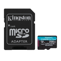 Micro SD Marca Kingston Modelo Canvas Go Plus Gen4 Capacidad De 256GB Con Adaptador SD SDCG4/256GB Velocidad De Hasta 200MB/s De Lectura Y 160MB/s De Escritura
